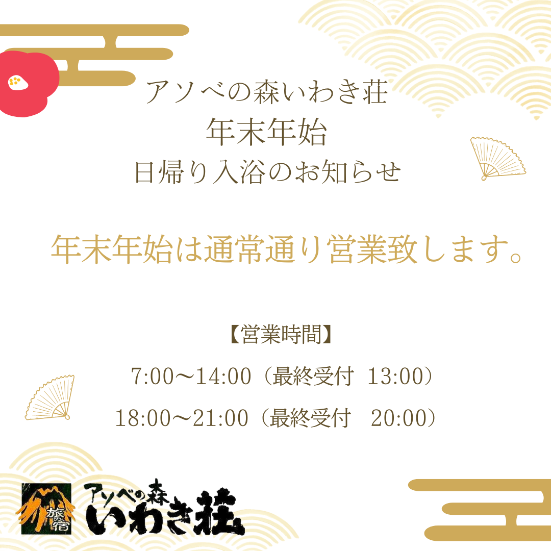 年末年始 日帰り利用のお知らせ