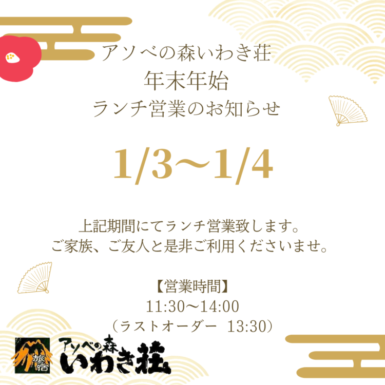 | 営業日 | 1/3(土)~1/4(日) 11:30~14:00(13:30ラストオーダー) |